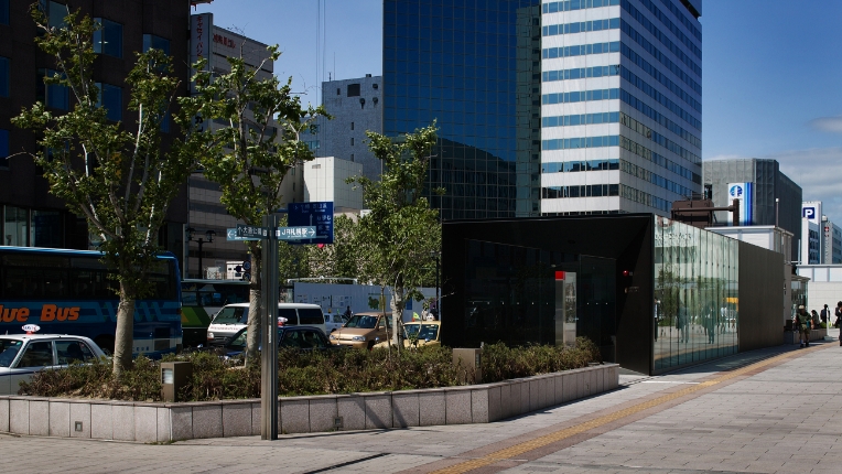 The police box is situated in front of Sapporo station, in the south entrance of the plaza. The new police station should be provided with a novel atmosphere suitable for the front door in Sapporo where a lot of people come and go, and it should be a building people are familiar with though it is a small-scaled construction. Hence publicity and privacy were the mission statements for the design. A police post needs both of them stronger than any other architecture.
