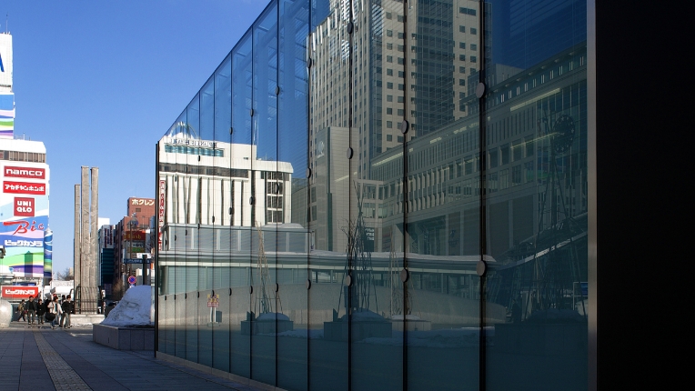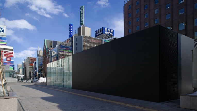 札幌の玄関口ともいえる札幌駅南口広場に交番の設計依頼をいただいたのは、平成15年6月のことである。依頼をいただいてから竣工までにおよそ2年の月日を費やした。その月日の間、首尾一貫して頂いた要望は、小規模な建築ながら、沢山の人々が往来する札幌の玄関にふさわしい斬新な佇まいを備え、交番を利用される方々に親しまれる交番を設計することである。この要望に応えるべく、最初に考えたことは、“都市の風景を異化する佇まい”を創るということだった。言い換えてみると構想する建築が“交番である”という“本質的存在様態”に落ちる手前で“独特の存在感がある”という“事実的存在様態”に留まりうる状態を実現することである。